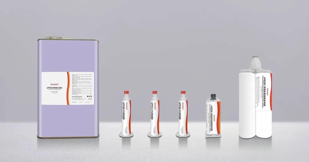 安川新材(Ancham)聚氨酯系列胶粘剂粘接性和韧性都可调节,并有着优异的粘接强度、耐温性、耐化学腐蚀性和耐老化性。涵盖热熔胶、反应型结构胶、溶剂型三防胶等产品类型。对金属、橡胶、玻璃、陶瓷、塑料、木材、织物、皮革等多种材料都有优良的胶粘性能。